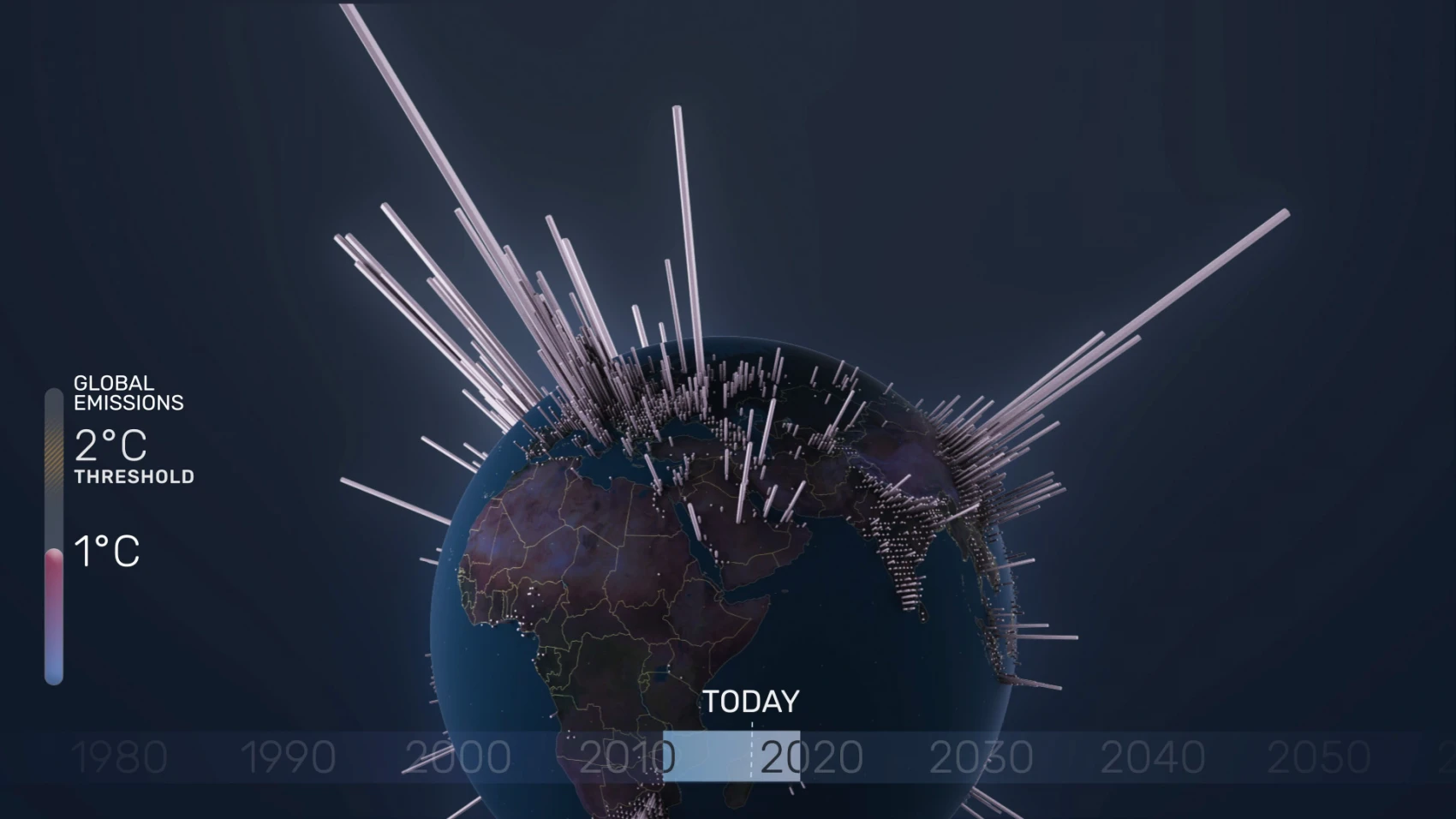 By combining data from the Carbon Dioxide Information Analysis Center (CDIAC) and the baseline projections of CO2 emissions by the Potsdam Institute for Climate Impact Research (PIK), we were able to visualize the CO2 emissions from 1751 to 2100 on a highly detailed geographical level.