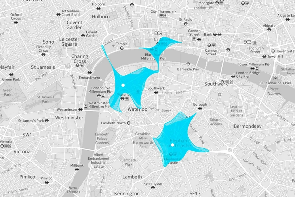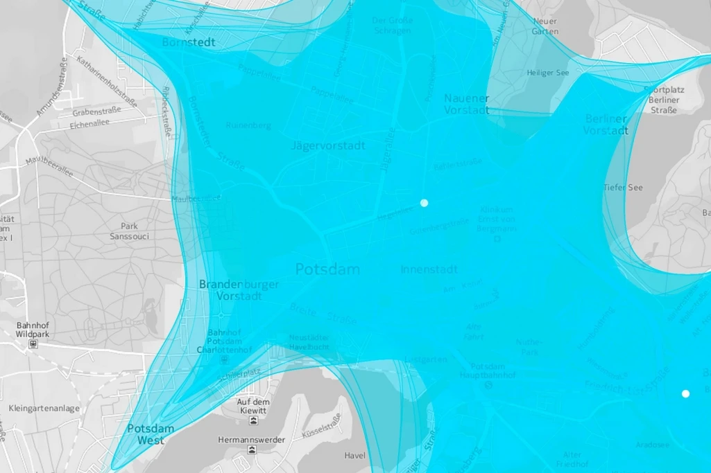 Once you are stuck in bad traffic conditions, you will need more time to cover the planned distance. In other words: stuck in a traffic jam, you will cover a smaller distance in a predefined amount of time. This is, what Isoscope is about: layered shapes show the area around a chosen location that is reachable within a chosen travel time. As traffic conditions change throughout the day, there are 24 layered shapes – each representing one hour of the day.